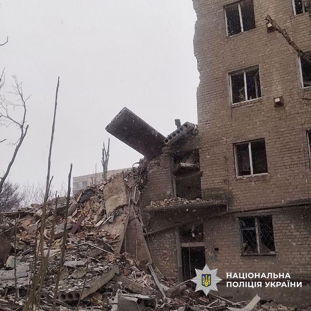 In Kostiantynivka, the russians struck with a KAB-250 bomb, FPV drones, and artillery — injuring three civilians, destroying a five-story building, and damaging a car.