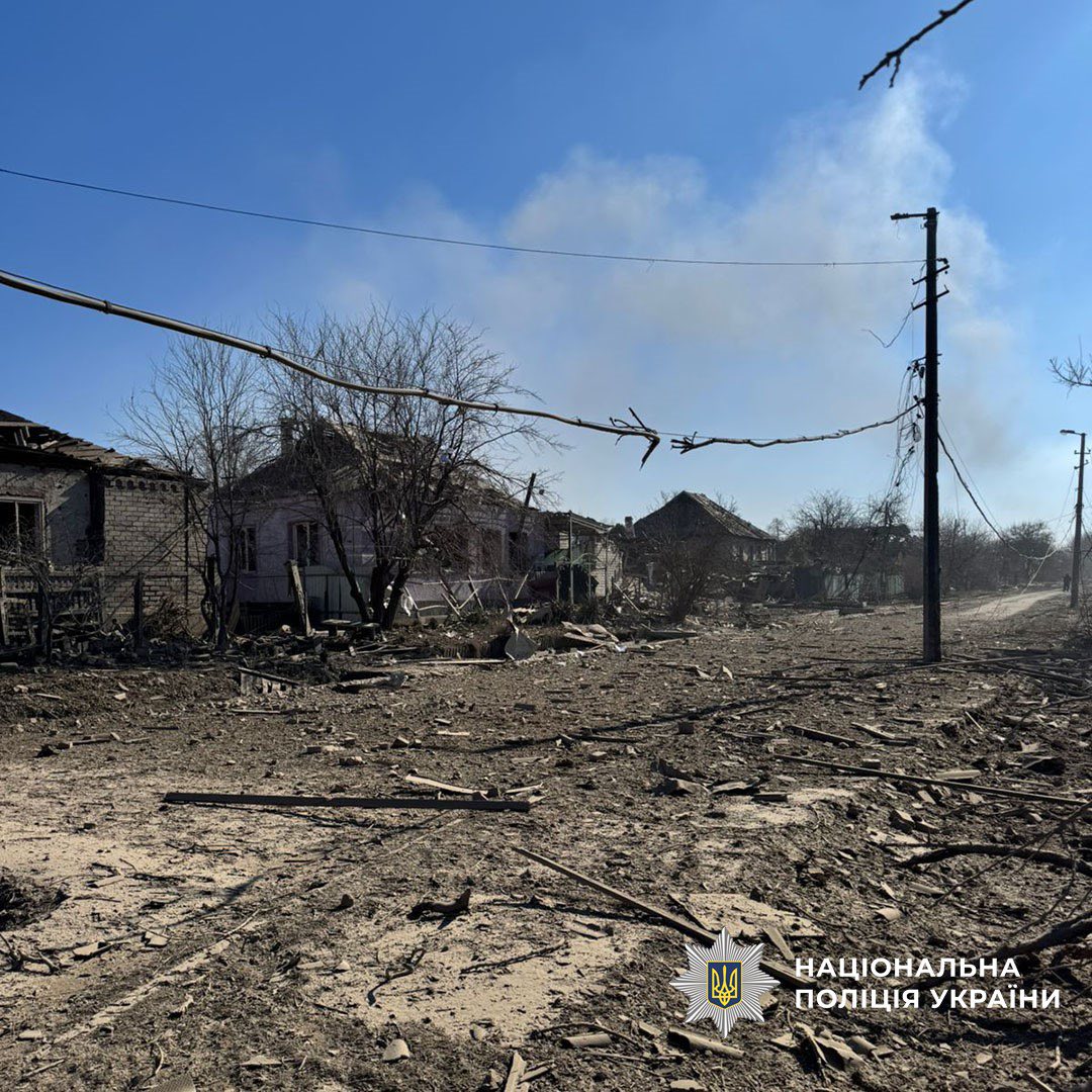 The russians dropped three KAB-250 bombs on Shabelkivka, killing a man and damaging 38 private houses. The enemy carried out five strikes on Druzhkivka: three civilians were injured, and an apartment building, a private house, and an administrative building were damaged.