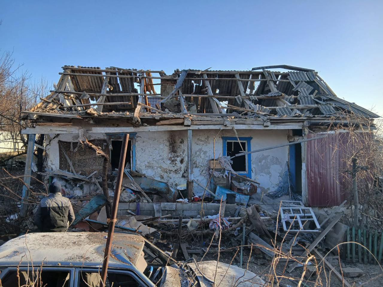 The enemy carried out four strikes with KAB-250 bombs and three FPV drones on Druzhkivka: six civilians were injured. Two private houses and a civilian car were damaged.
